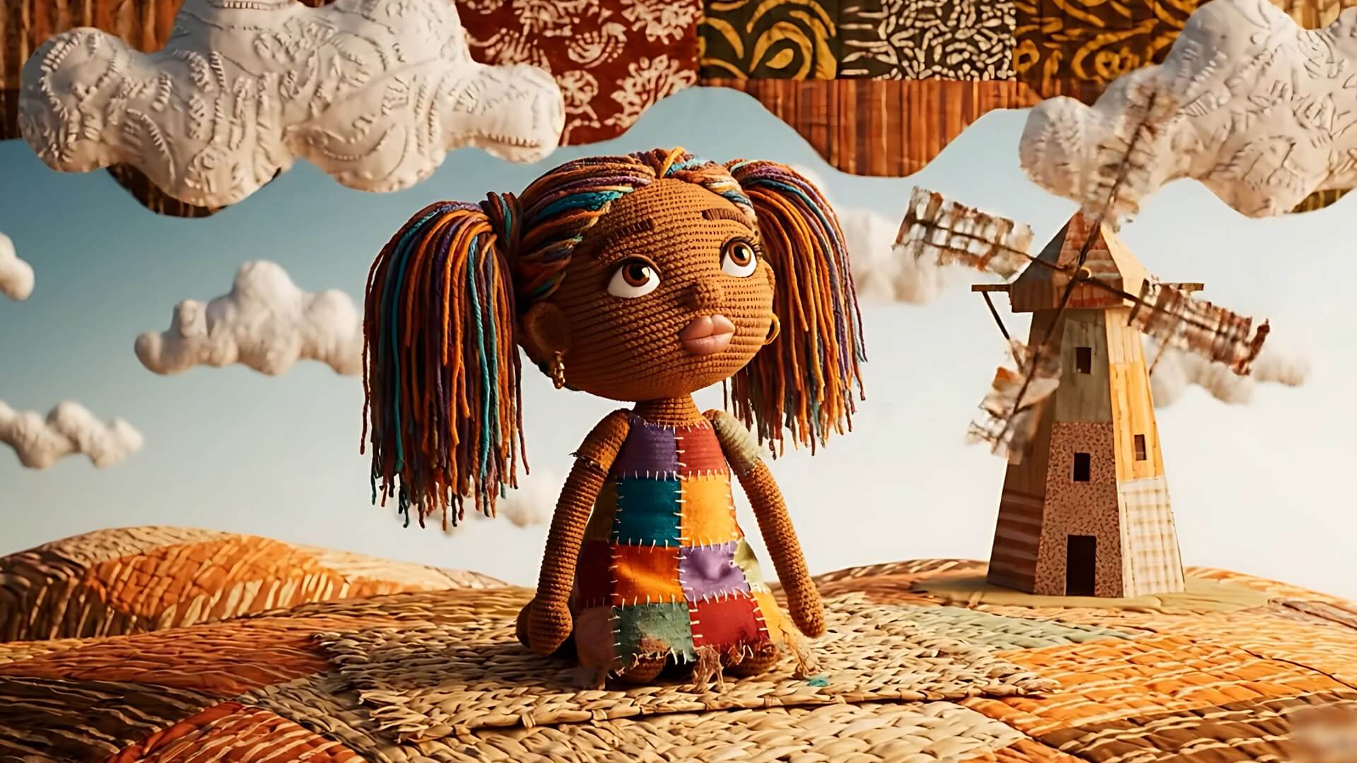 - A stylized animation approach was developed to mimic handcrafted materials through detailed textures and lighting. Stop-motion inspired movement and textile-based visual design helped bring the environment to life while reinforcing the story’s themes of perseverance and creativity..